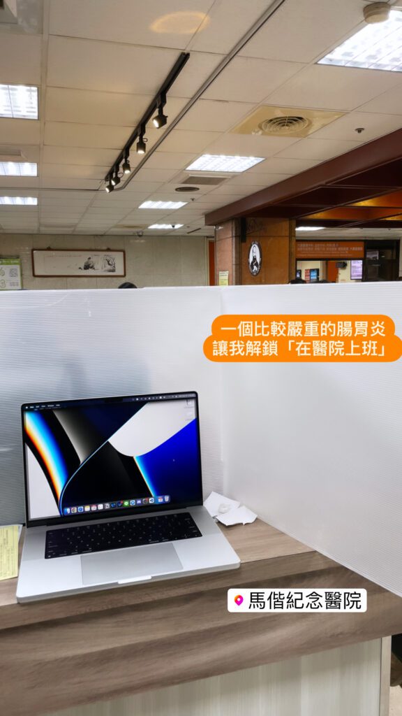 以上就是我的五天病毒型腸胃炎的戰鬥記錄,這同時也是onboard遠端工作後我第一次生病,覺得自由工作者真的充滿彈性,能夠在不舒服當下立刻去看診、避免下班排隊人潮。雖然其中一天在醫院「短暫上班」聽起來很慘,但是想要看病就看病的彈性,這樣的自由真的是無價。