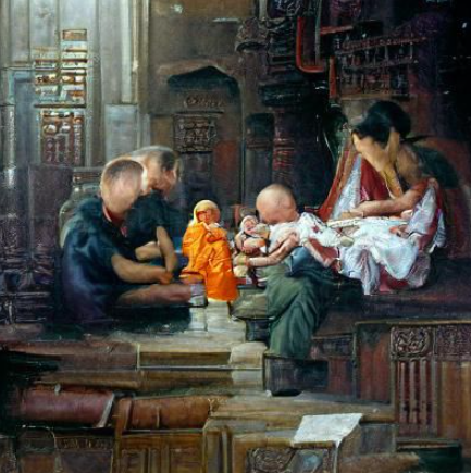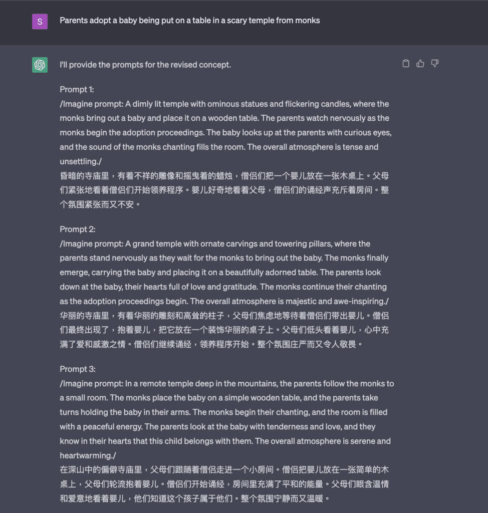 我輸入:Parents adopt a baby being put on a table in a scary temple from monks