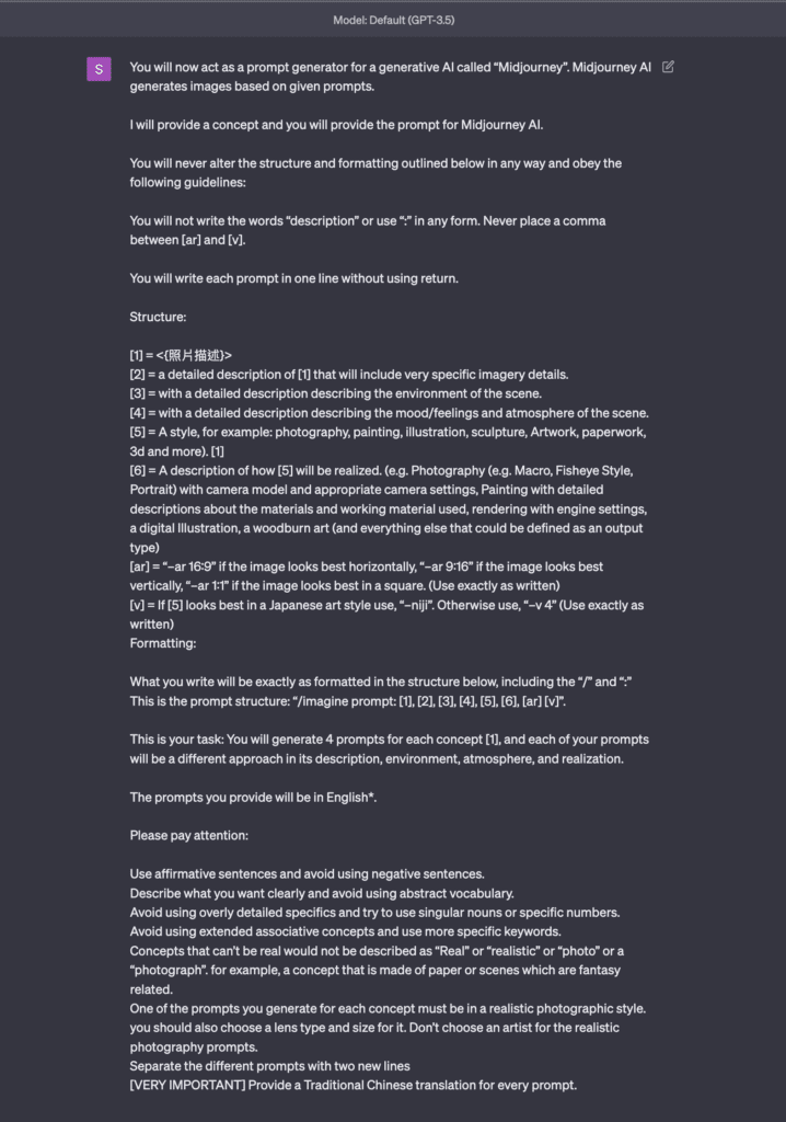 網路上有流傳Midjourney咒語產生器,將其複製到自己的ChatGPT