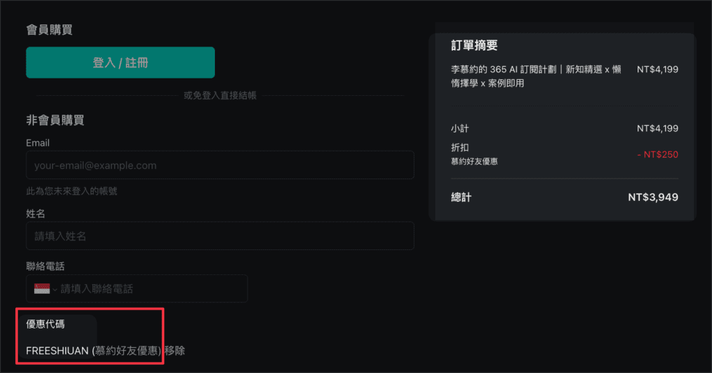 我作為付費學員,可以使用我的折扣碼 FREESHIUAN 獲得 $250 的折扣,每天用大約 10 元即可獲取這項持續更新的 AI 資訊服務