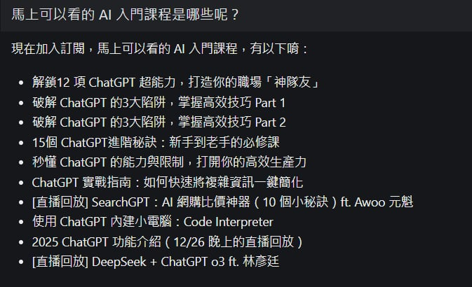 因為付費訂閱,更有動力學習,更想要收穫。自從開始上課之後,最近一個月也投資更多時間在 AI 上,分享更多心得給其他人。