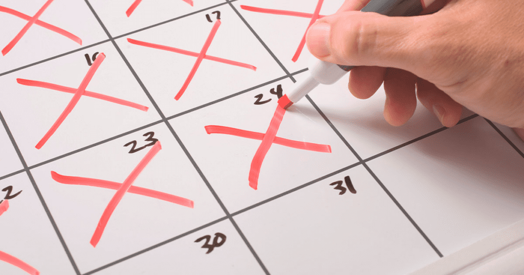 我會用一個實體行事曆追蹤我的睡眠,如果當天有睡滿 8 小時,我就會打 X 。