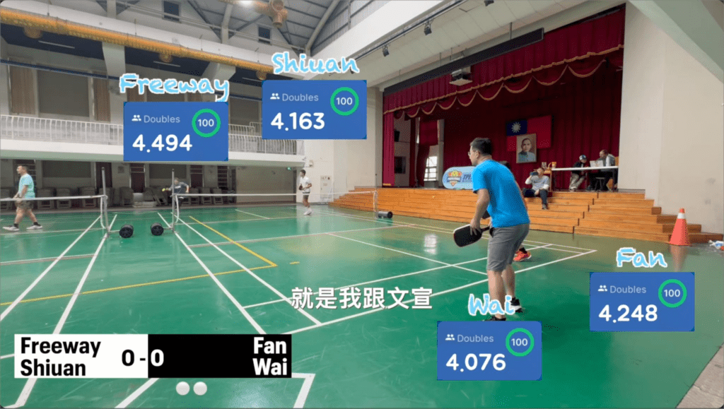 場地畫面,可以參考我跟 Freeway 的這場4.0+男雙比賽。