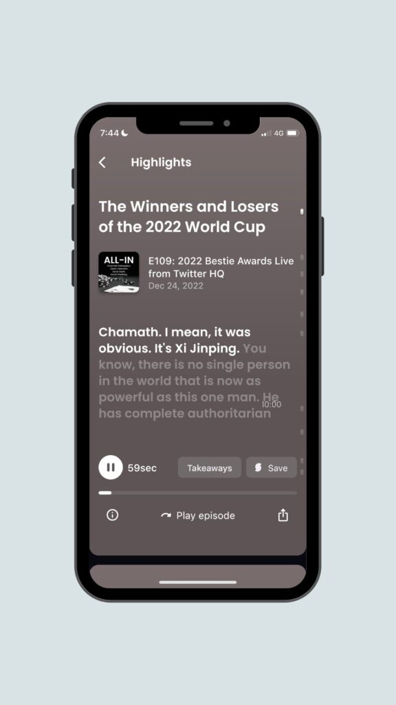 Snipd這個 AI Empower Podcast App 有效解決了 ”Podcast as input” 的痛點,它可以幫助你更有效率地篩選、紀錄和分享Podcast,大幅提升我們的的Podcast input/ output效率。