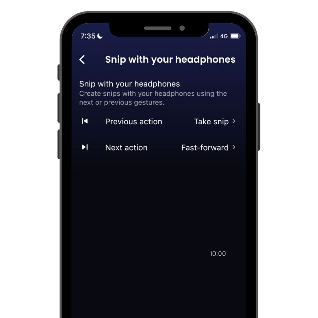 殺手級應用在於:Snipd 支援藍牙耳機操控,例如 AirPods 默認點擊三下即可自動擷取前 1 分鐘的內容,讓使用者完全不用拿出手機,實現不中斷閱聽體驗的無縫筆記。