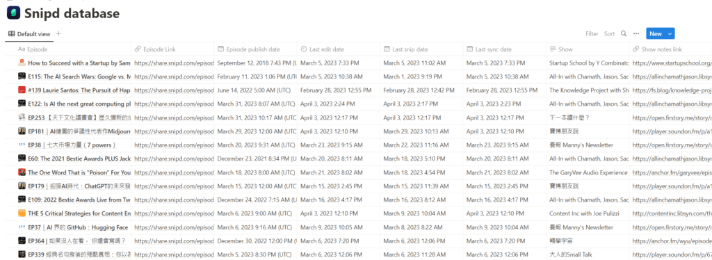 Snipd 目前不支援中文,但是仍然可以使用clip剪輯重要的內容(紀錄、分享的功能仍有,只差AI語音轉文字、章節摘要。我相信隨著近期AI的發展,Snipd很快就會支援中文。