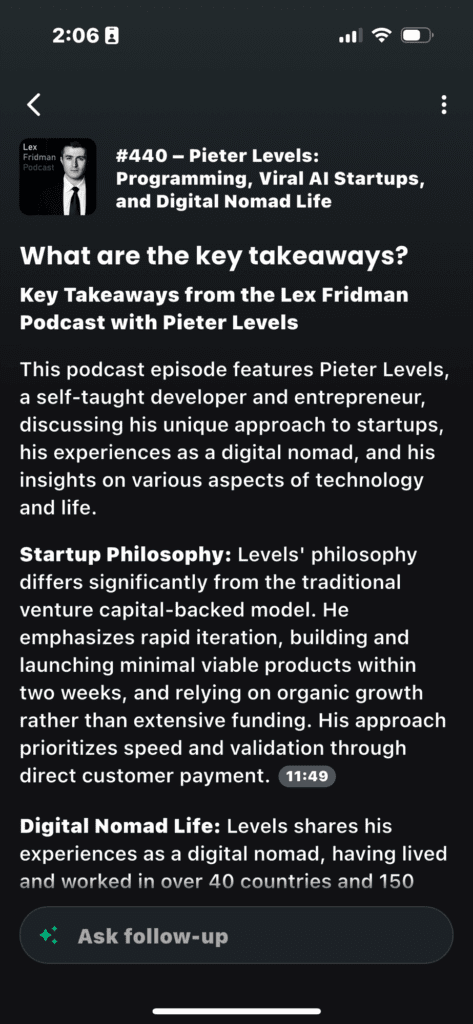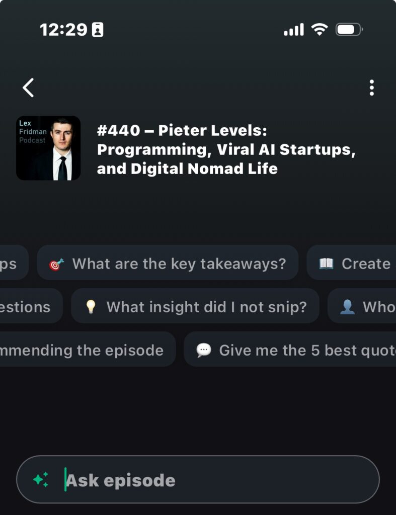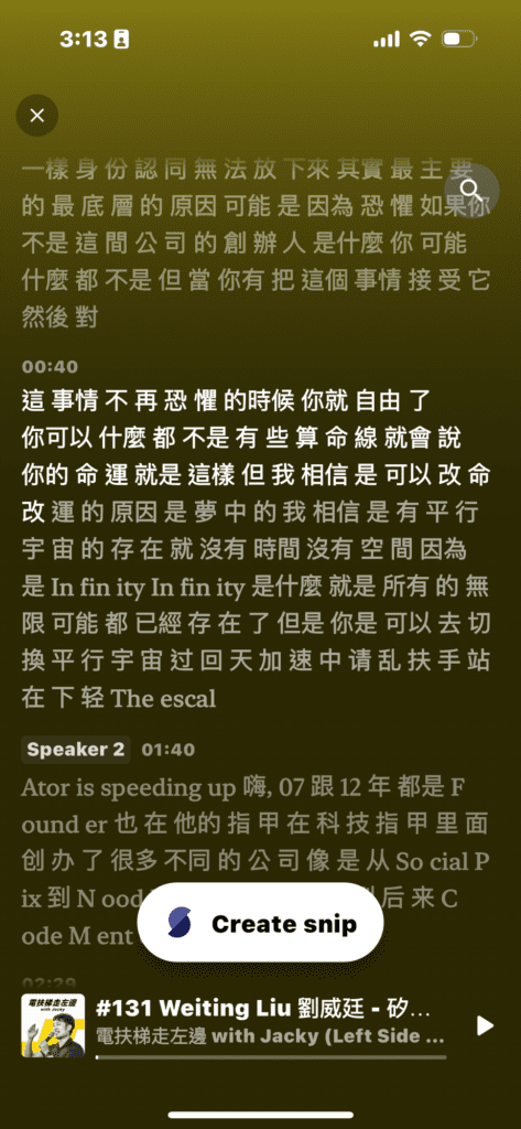 前陣子很擔心 Snipd 會在眾多LLM 殺出下被競爭取代,或是功能隨時被 Apple Podcast 、 Spotify 抄掉。