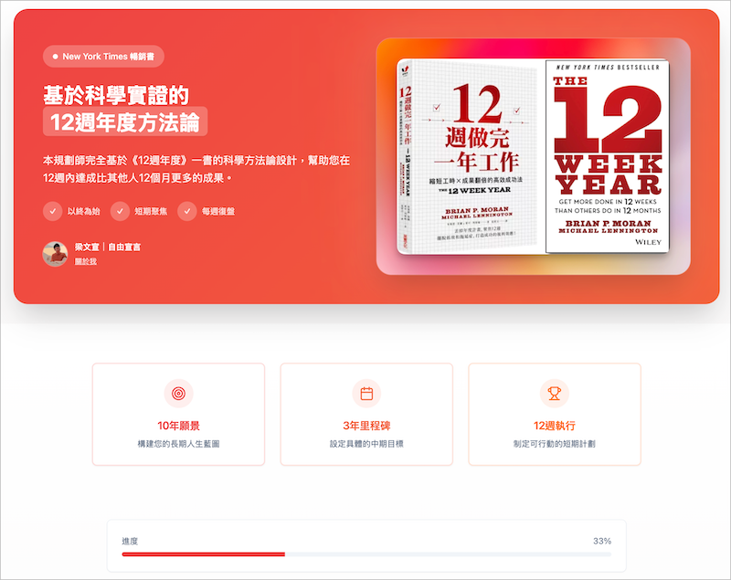 這是我 Vibe coding 設計了一個一站式設計 12 週計畫願景的網站,歡迎使用