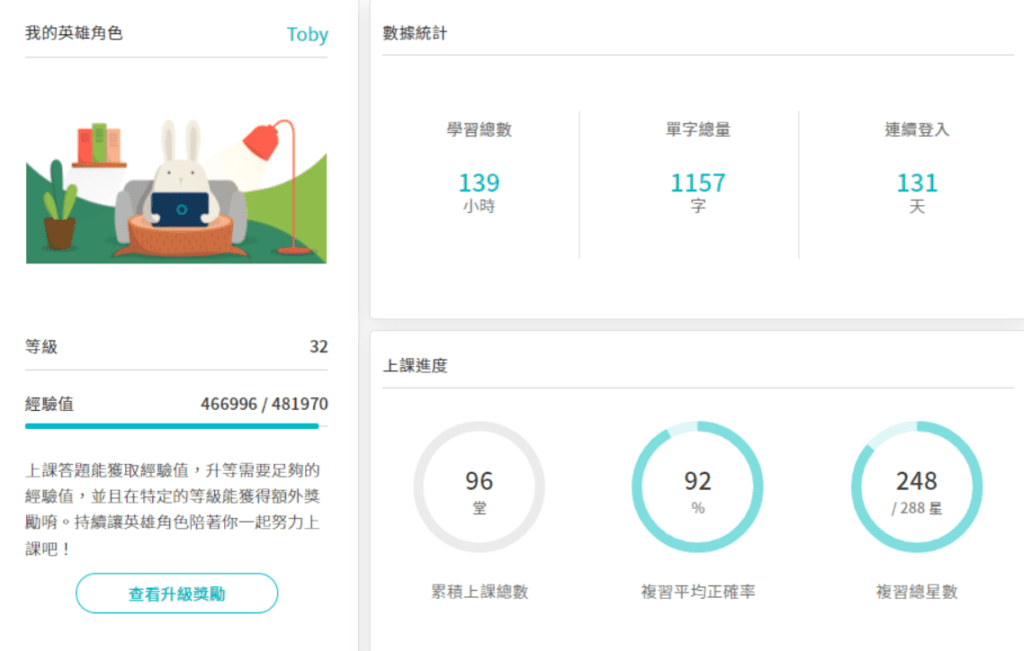• 除了每天要花30分鐘上正課之外,還要花約15分鐘的時間複習之前的內容,通常是答錯的題目