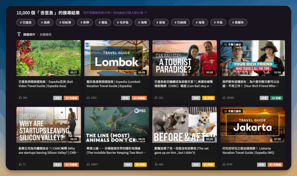 我非常推薦在出國旅遊前,在 VoiceTube 上搜尋目的地的影片