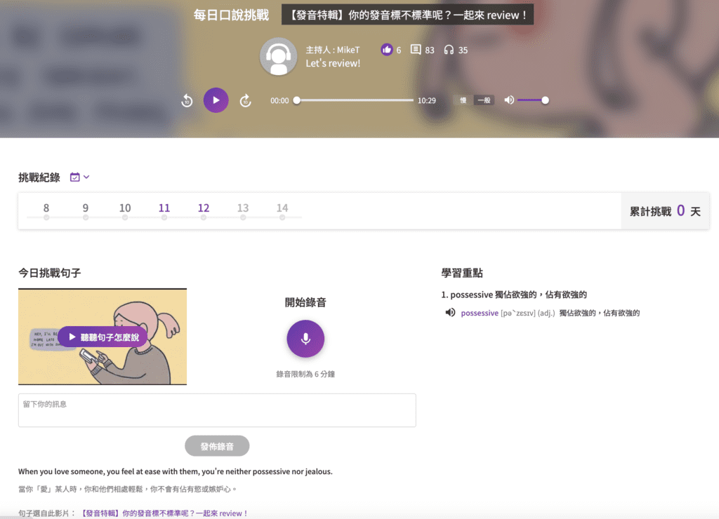 想要輕鬆一點的英文學習挑戰?也可以嘗試VoiceTube Pro 的每日口說挑戰。