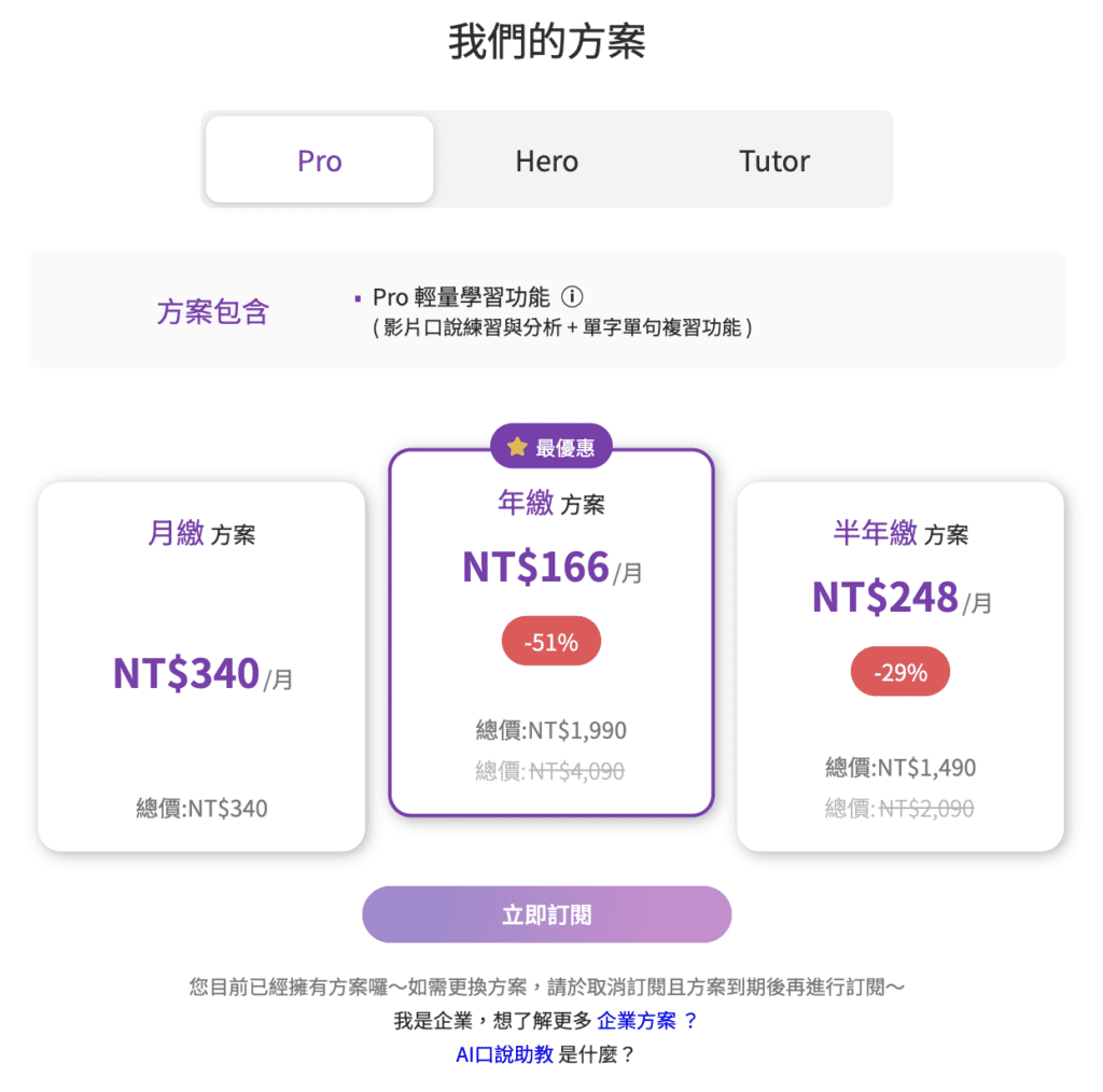 我個人蠻推薦有訂閱 VoiceTube Hero 的學生,升級成 VoiceTube Tutor 方案。