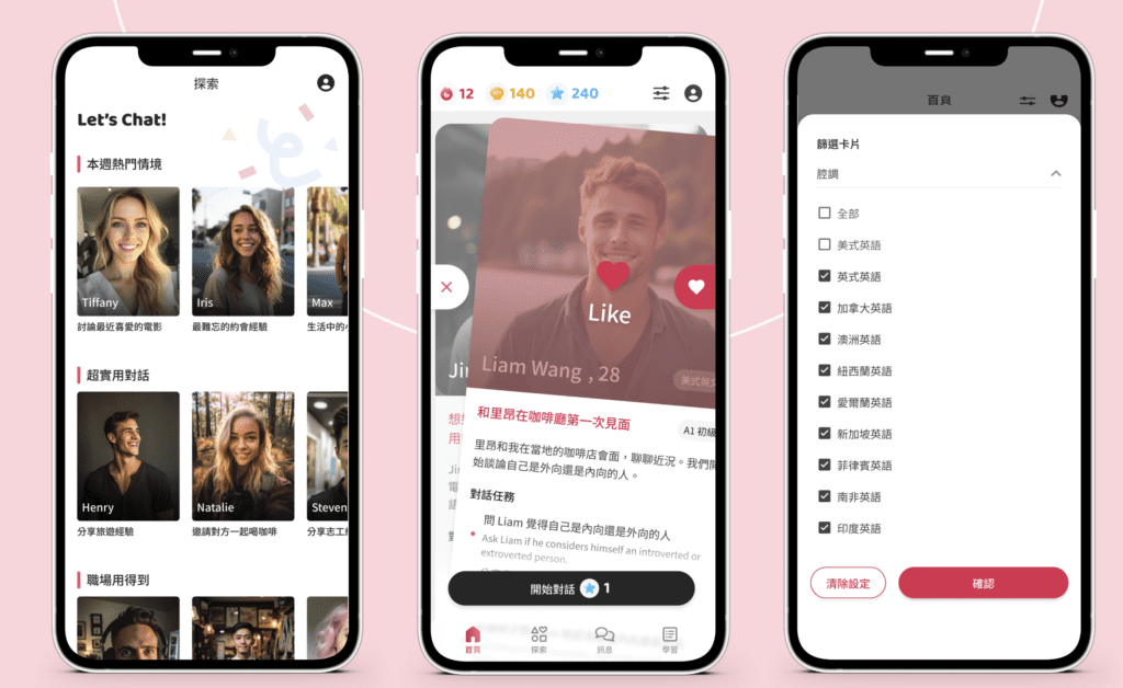 Dori是一款 AI 英文口說 App,結合「交友 App」風格,讓「閉俗的人」也可以跟 AI 輕鬆學習生活英文會話。